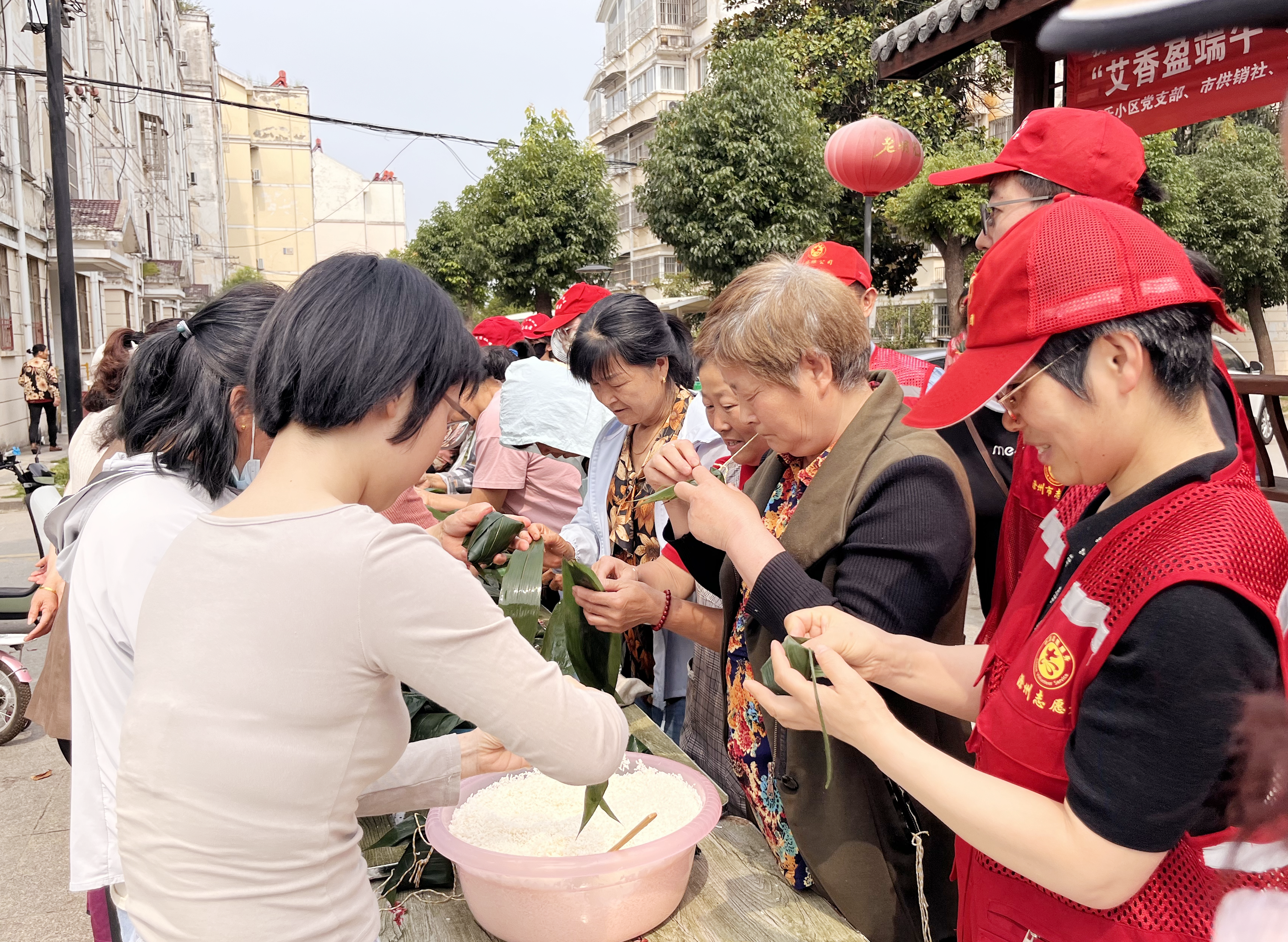 5月28日上午,集團(tuán)三個黨支部的黨員志愿者們來到了十三里店社區(qū)天樂北苑,會同社區(qū)和共建單位黨組織,聯(lián)合舉辦“艾香盈端午,粽香鄰里情”社區(qū)居民端午節(jié)包粽子活動,志愿者們提前準(zhǔn)備好了粽葉、糯米、扎線、桌椅、盆、桶、手套、口罩等包粽子食材和工具,現(xiàn)場群眾踴躍參與,場面異常熱烈溫暖。黨員們一邊維護(hù)好活動秩序,一邊幫忙將包好的粽子仔細(xì)擺放、點(diǎn)數(shù)、打包和登記,確保活動有序和諧開展,讓社區(qū)居民高興而來,滿意而歸,營造濃濃的端午節(jié)日氣氛,推進(jìn)和睦友善的鄰里情誼。