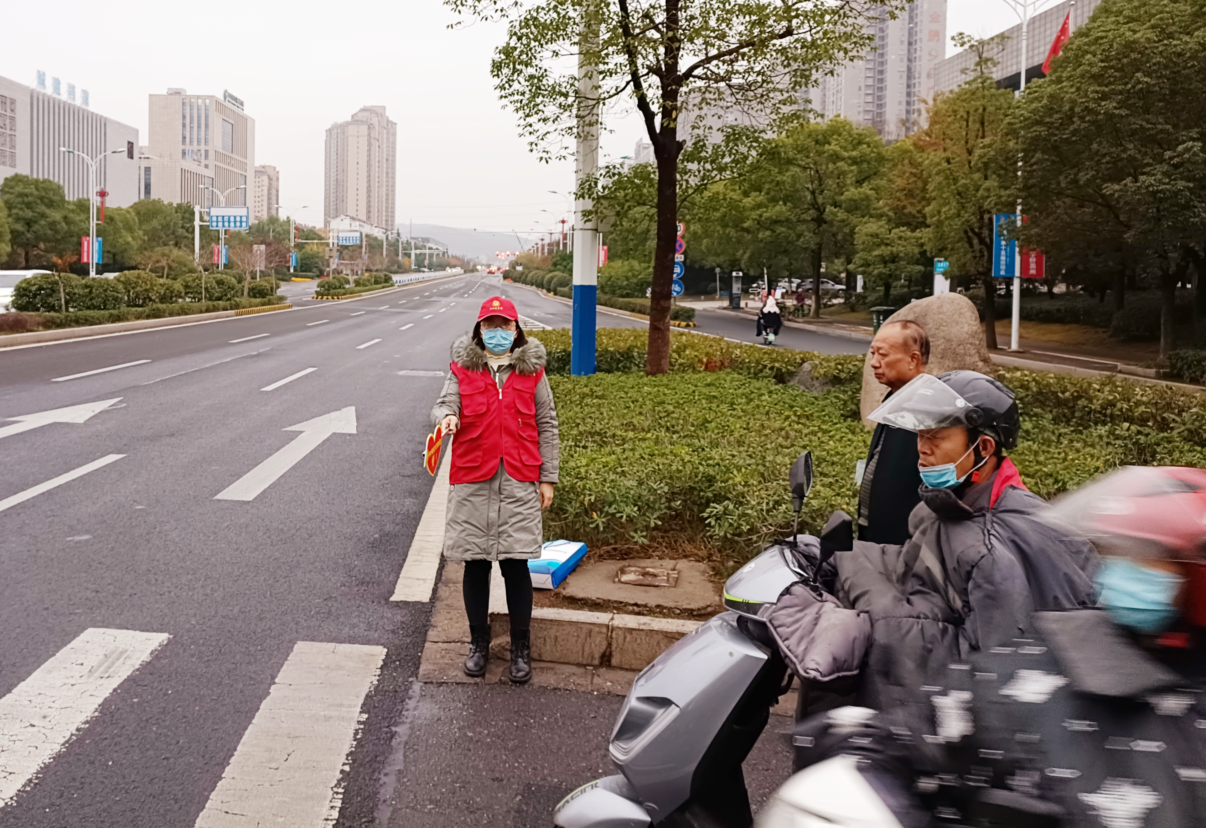 二是組織志愿者來(lái)到交通高峰路口,開展安全文明交通勸導(dǎo)志愿服務(wù)活動(dòng),志愿者身穿紅馬甲、頭戴志愿帽、手持勸導(dǎo)牌,對(duì)行人和騎車者的逆行、闖紅燈、 不走斑馬線、隨意橫穿馬路等不安全、不文明交通行為進(jìn)行勸阻和教育,引導(dǎo)人們遵守交通法規(guī),提高安全意識(shí),做文明守法滁州人。